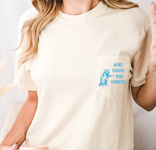 Adorable Tribute: 'Weird Teachers Build Characters' Unisex Pocket Garment T-shirt for Cherished Educators