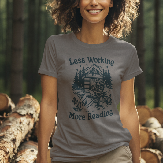 Unlock Adventure: Retro Tee in 6 Colors | Less Working More Reading Design for Camp & Outdoor Enthusiasts