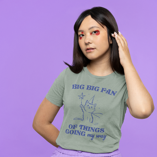 Princess Vintage Cartoon Cat Design 'Big Big Fan Of Things Going My Way' on Bella Canvas 3001: Fun Colors