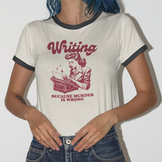 Writing Because Murder is Wrong - Vintage Dark Red Inspired Ringer Unisex Tee Next Level 3604