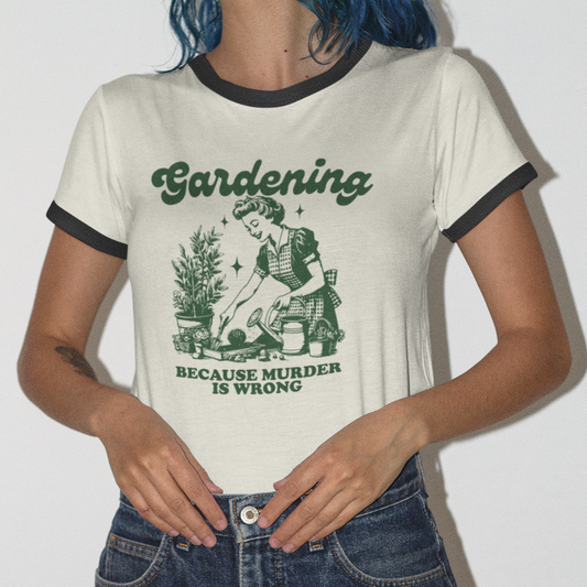 Vintage Green Design Gardening Because X is Wrong-Unisex Cotton Ringer T-Shirt