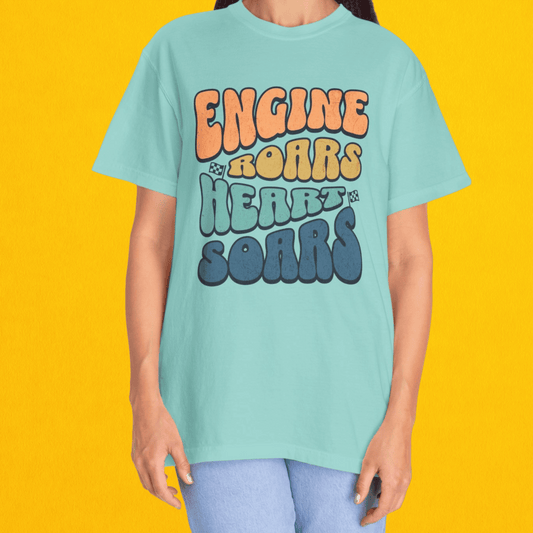 Rev Up in Style Drag Racing Oversized Shirt - Engine Roars, Heart Soars I 6 Retro Colors Unisex Garment-Dyed Comfort Colors 1717 T-shirt
