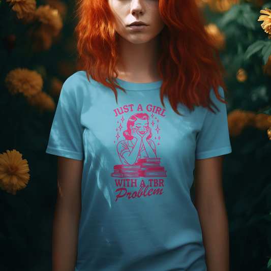 Vintage-Inspired Pink Line Drawing T-Shirt: Just a Girl with a TBR Problem Unisex Jersey Short Sleeve Tee