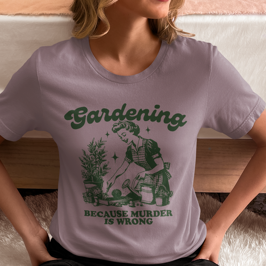 Gardening Because Murder is Wrong- Vintage Green Design Unisex Jersey T-shirt