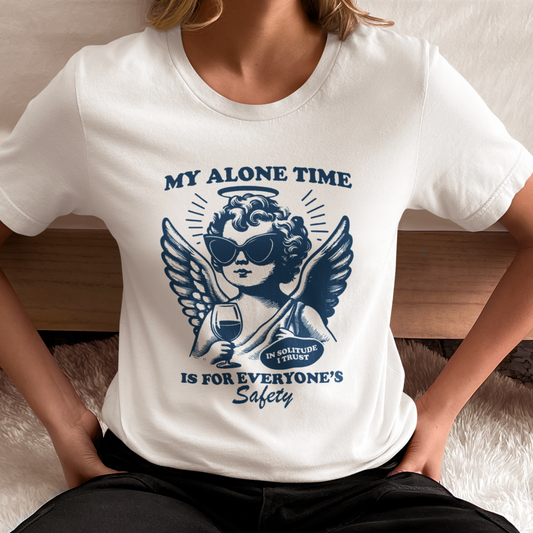 Angel with Wine - My Alone Time is for Everyone's Safety Unisex Jersey Short Sleeve Tee Extended Sizes Available