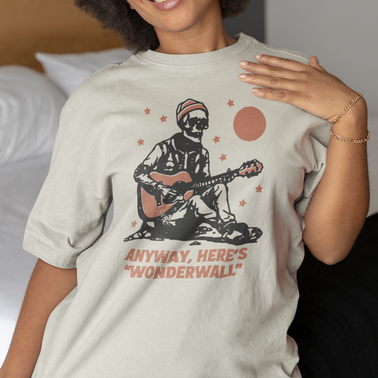 Hipster Skeleton Guitarist Tee: Anyway, Here is 'Wonderwall' Unisex Garment-Dyed T-shirt