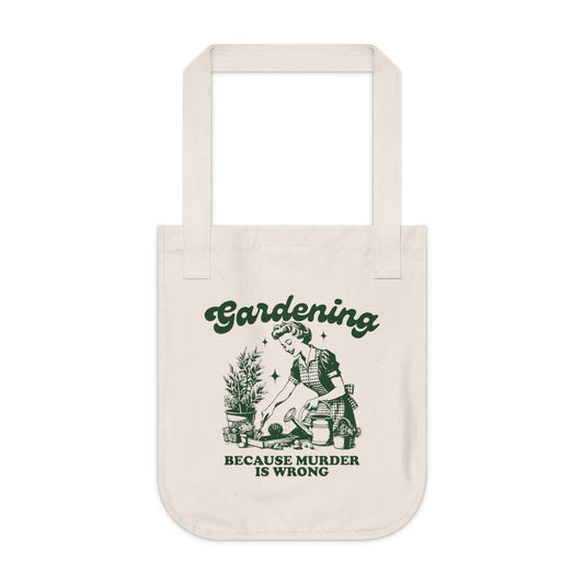 Vintage Design Gardening Because Murder is Wrong Organic Canvas Tote Bag
