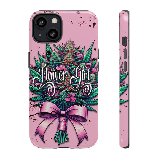 Coquette Grunge-Themed Tough Cell Phone Cases: Cannabis & Wildflower Bouquet Design