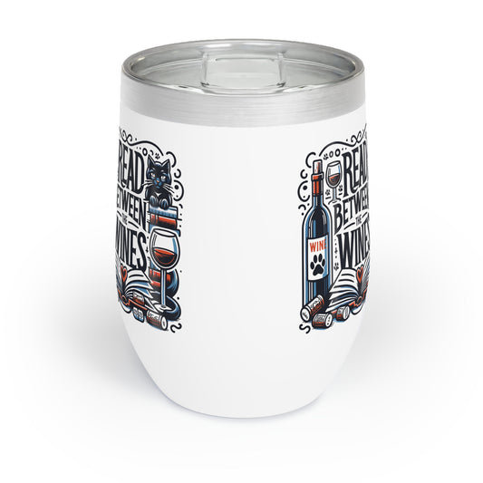 Chill Wine Tumbler: Sip in Style with Our 'Read Between the Wines' Design-White