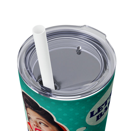 Retro 50s Housewife Cannabis Skinny Tumbler | Let's Get Baked with Matching Straw, 20oz