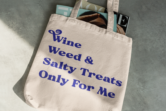 Sassy Canvas Shopping Tote: Wine, Weed & Salty Snacks - Only for Me!