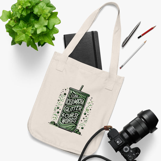 Exclusive Coffee and Glitter Design for Organic Canvas Tote Bag