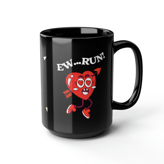 Ew Run Anti-Valentine's Day Black Mug, 15oz
