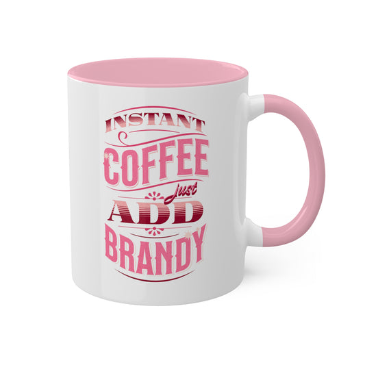 Instant Coffee Just Add Brandy 12 Colorful Coffee Mugs with 12 Custom Designs, 11oz