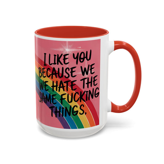 Funny Bestie or Co-Worker Gift Mug – "We Hate the Same Things" Accent Coffee 11 or 15 oz Mug