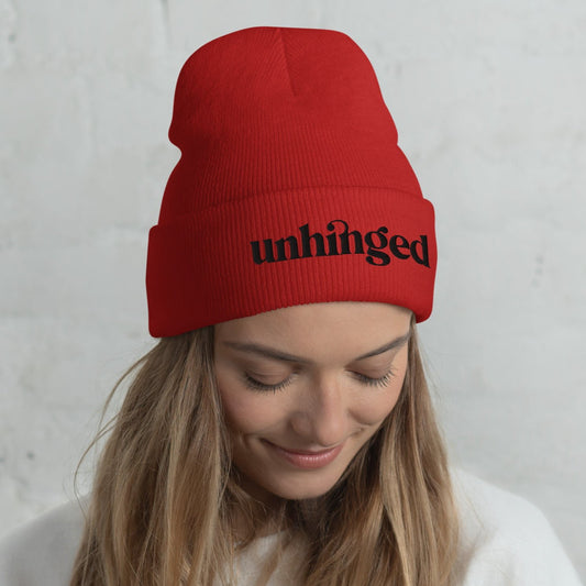 Unhinged Embroidered Cuffed Beanie – Bold Streetwear Essential | Available in 6 Colors