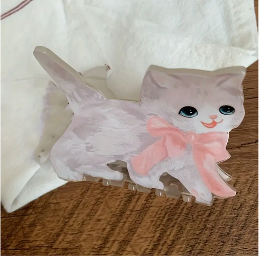 Pre-Packaged Adorable White Cat Hair Claw Clip | 3.5" Cute 3D Kitten