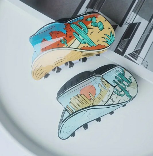 Pre-Packaged 2 Desert Western Styles Cowboy Hair Claw Clips | 3.46" x 1.57" Acrylic