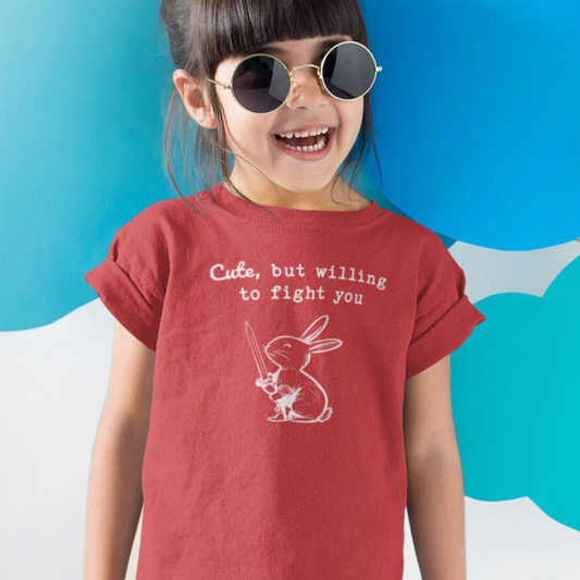 Kids Adorable Bunny with Attitude: Cute but Willing to Fight You Kids Cotton™ Tee in 7 Colors