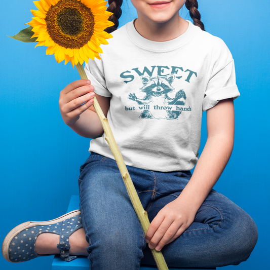 Kids Comfort Color T-Shirt - Sweet but Will Throw Hands | Fun Gift for Nieces & Nephews in 6 colors