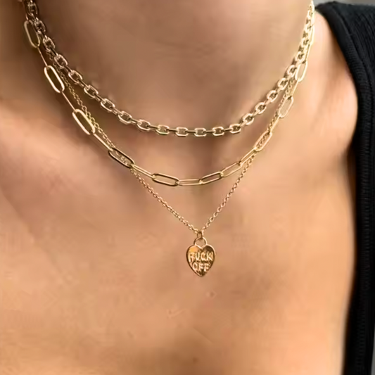 Fuck Off Gold & Silver Heart Pendant Necklace | Bold Statement Jewelry with Velvet Gift Bag