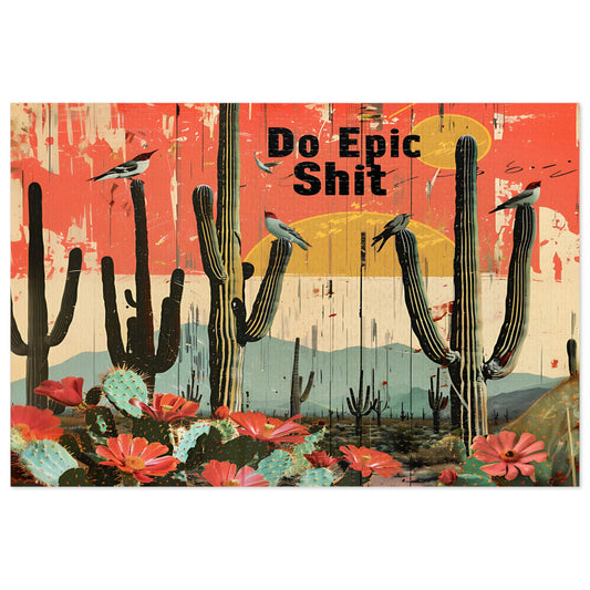 Jigsaw Puzzle: Desert Cactus 'Do Epic Shit' Motivational Art, 500, 1000, 2000 Piece Options, Gift-Ready Metal Tin Box, Adult Humor Gift