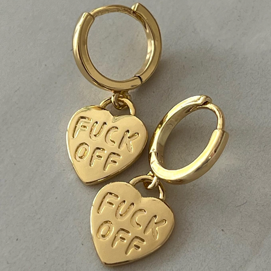 Fuck Off Heart-Shaped Gold & Silver Plated Huggie Earrings