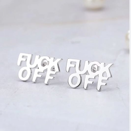 Fuck Off Stainless Steel Ear Studs Gold and Steel Color Bold Statement Jewelry