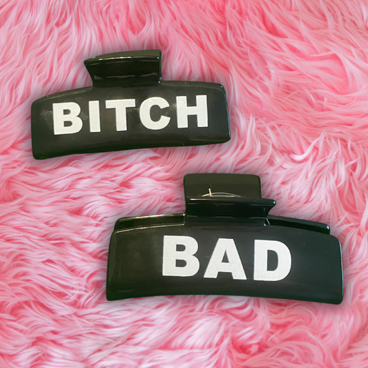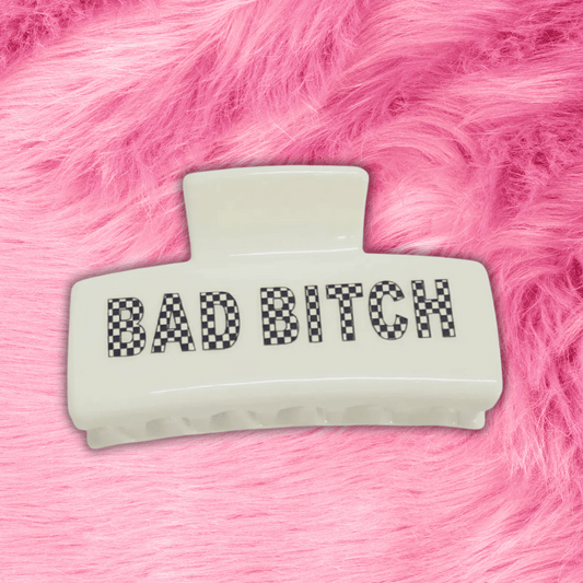 Checker 'Bad Bitch' Acrylic Hair Clip with Velvet Moon Star Gift Bag - Bold Gift for Confident Women