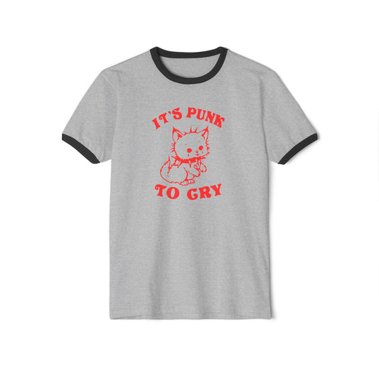 Cute Crying Cat Ringer Tee, Punk to Cry Shirt, Unisex T-Shirt, 4 Color Options, Graphic Tee