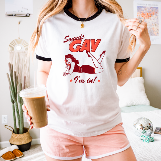 Sounds Gay I'm In Ringer T-Shirt – Retro Queer Pride Tee | Unisex LGBTQ+ Shirt