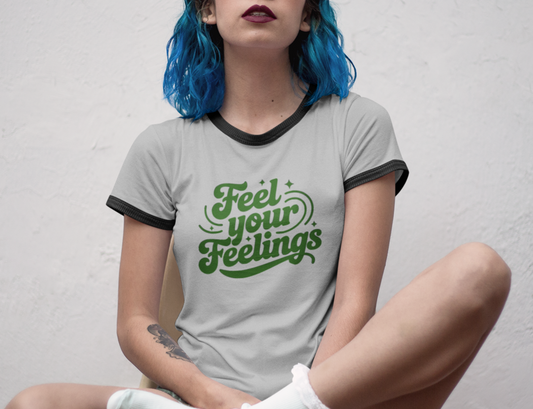 Feel Your Feelings Unisex Ringer T-Shirt Retro Emotional Wellness Tee in 4 Color Combos