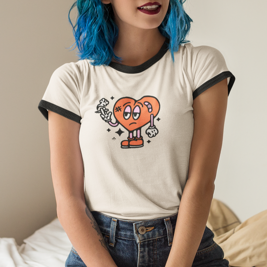 Anti-Valentine’s Unisex Ringer Tee – Broken Hearted & Over It