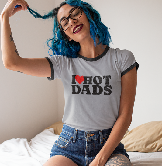 I Love Hot Dads Ringer T-Shirt - Funny Retro Unisex Tee in 4 ColorsCombos