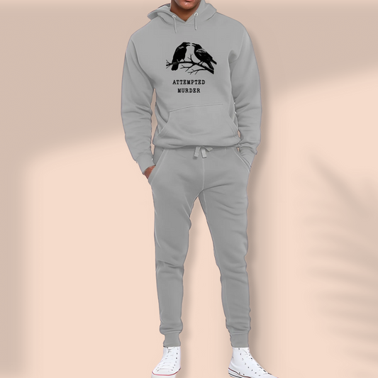 Attempted Murder Crow Lounge Set - Unisex Hoodie and Joggers in Cozy Fleece | Stylish & Comfortable