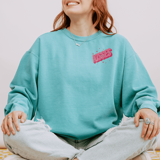 Valentines Kisses Vintage Design Available in Pastel Muted Colors Unisex Garment-Dyed Sweatshirt