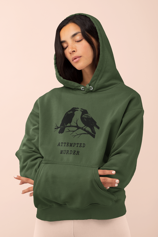 Attempted Murder Raven Vintage Gothic Unisex Hooded Sweatshirt | Cozy Cotton Fleece, Medium-Heavy Fabric